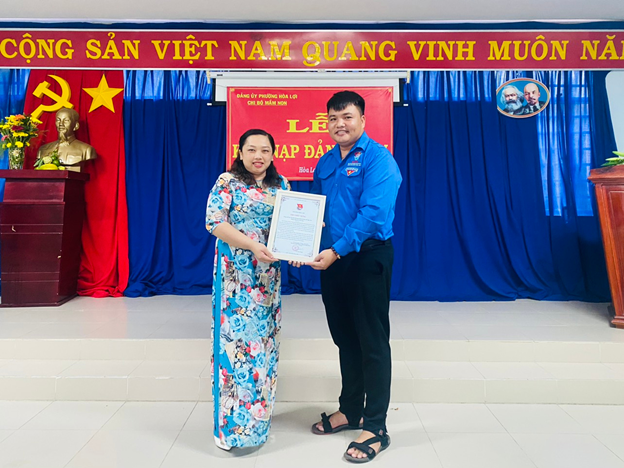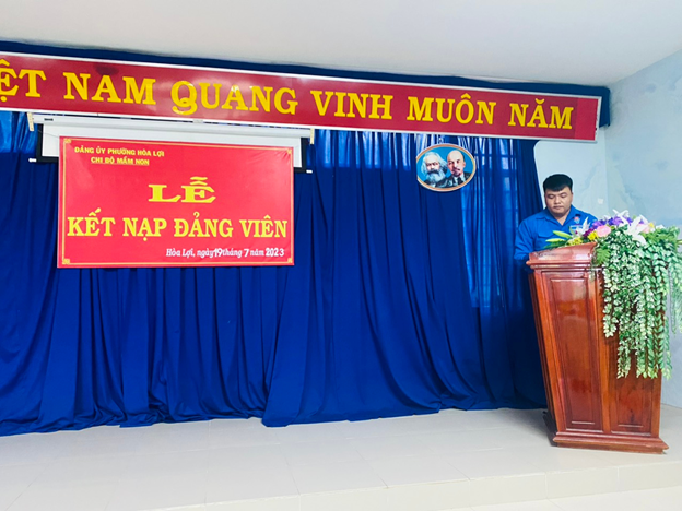 Tại Lễ kết nạp, Chi bộ đã công bố và trao Quyết định của Đảng ủy Phường Hòa Lợi về việc kết nạp đoàn viên ưu tú Cao Thị Mỹ Phương vào Đảng Cộng sản Việt