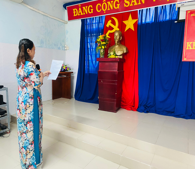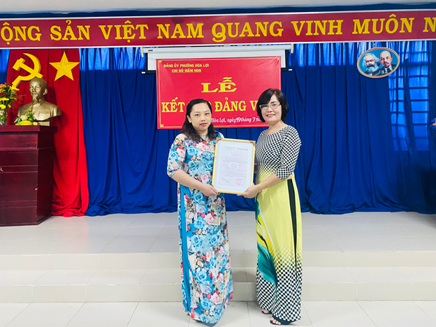 Chiều ngày 19/07/2023, Chi Bộ Trường Mầm Non Hòa Lợi tổ chức Lễ kết nạp đảng viên mới cho đồng chí: Cao Thị Mỹ Phương