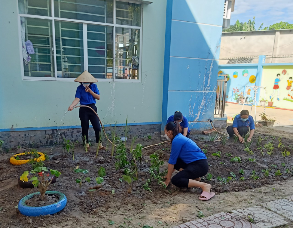 5h chiều ngày 6/10/2022 đoàn thanh niên cải tạo lại vườn cây thuốc nam
