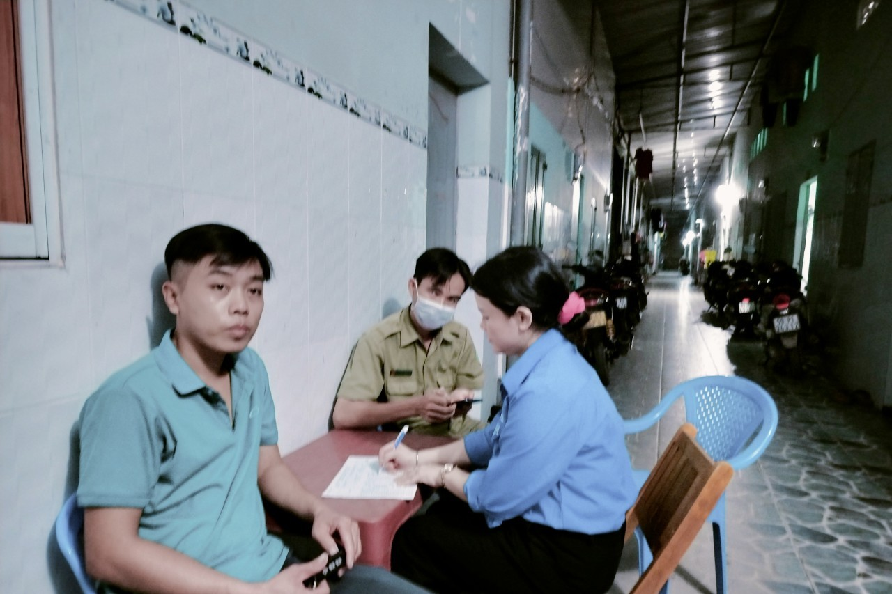 tối này 11/3/2023 thanh niên Trường Mầm Non Hòa Lợi phối hợp các chi đoàn khu phố và các chi đoàn Trường học, công an viên khu phố hỗ trợ người dân cài đặt ứng dung VnelD cho người dân trên địa bàn