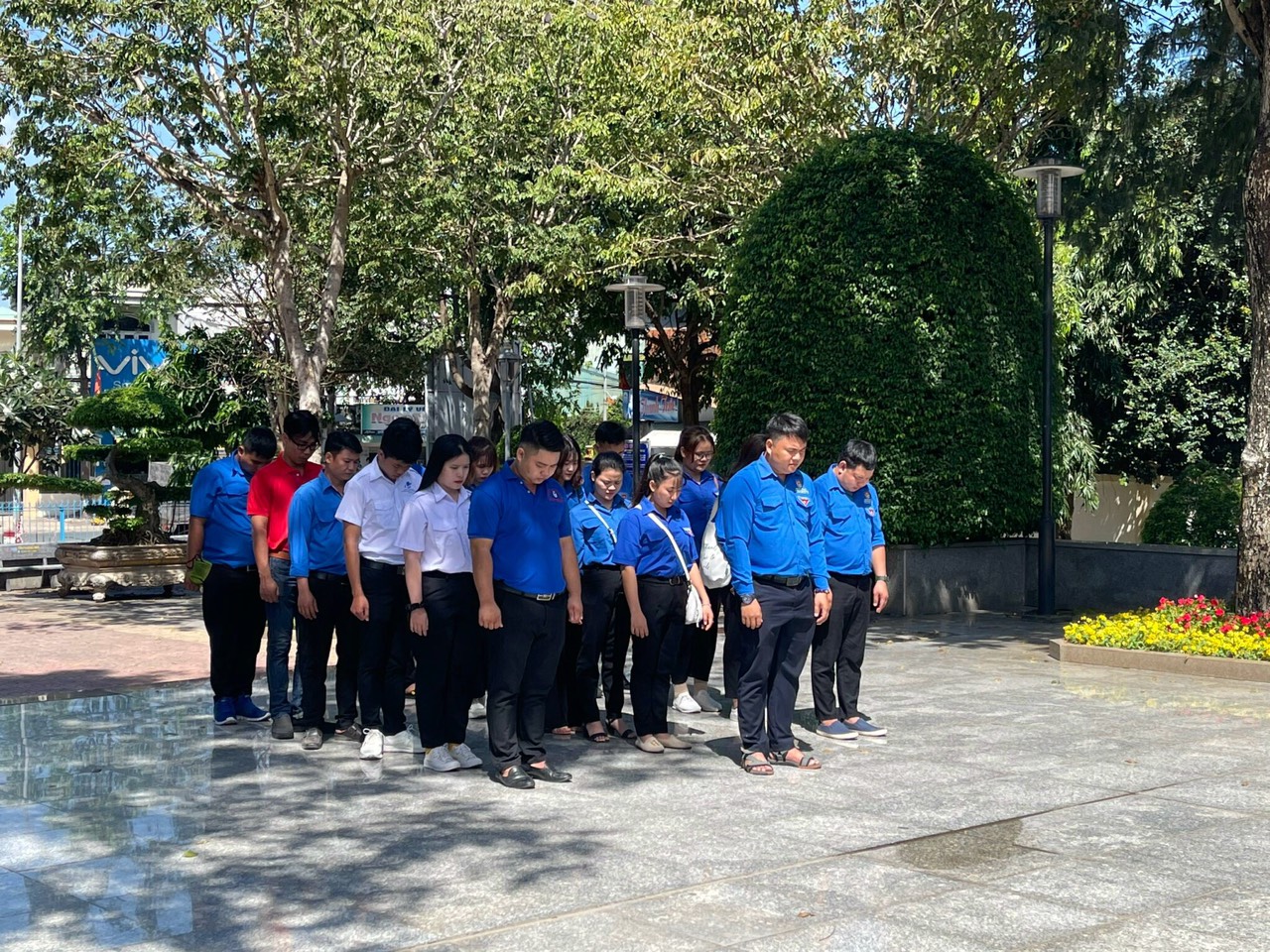 Đoàn viên viếng hoa, trái cây lên tượng đài Liệt sĩ Võ Thị Sáu