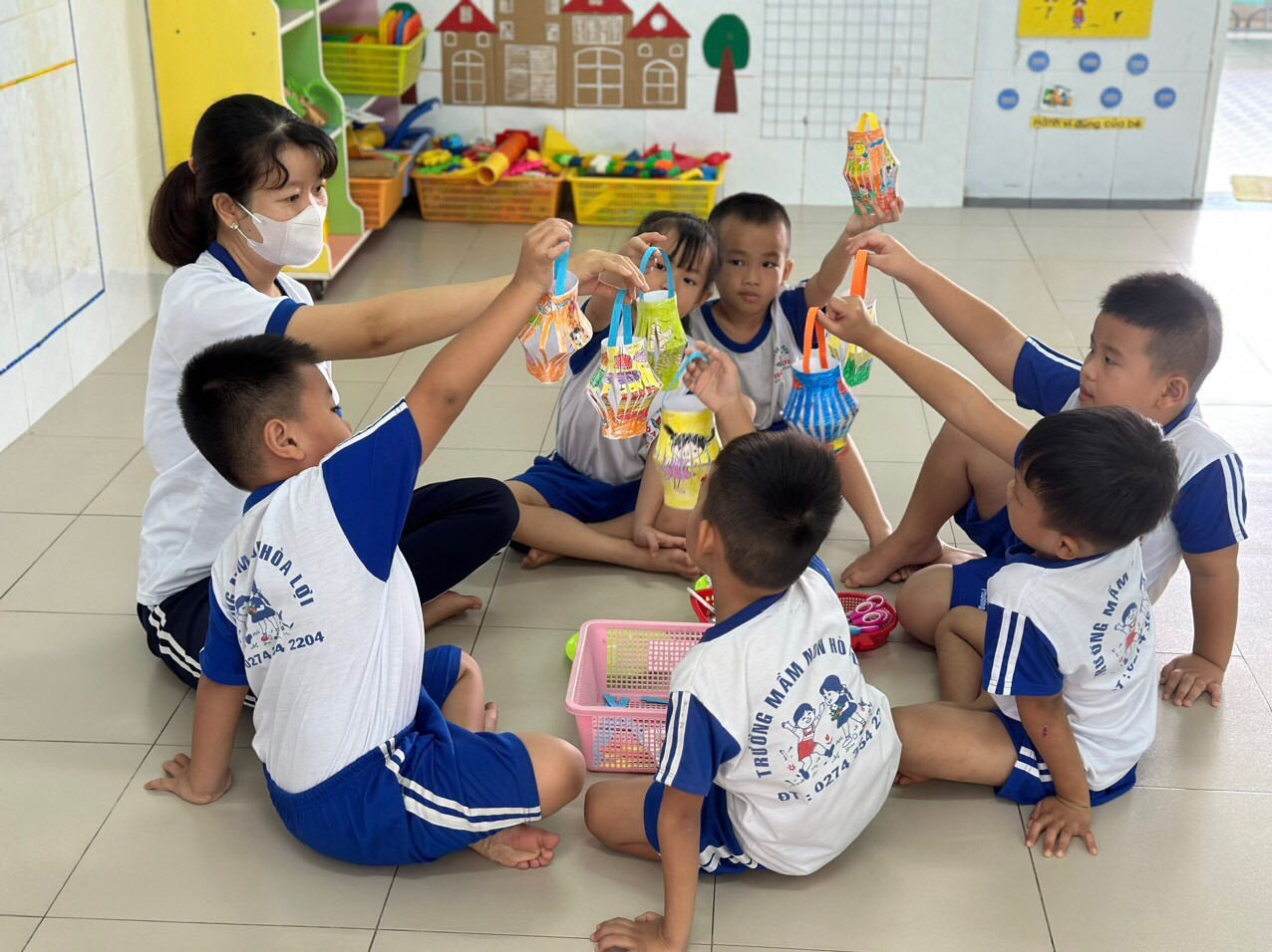 Ngày 28/9/2023 (nhằm ngày 14 tháng 8 âm lịch) là chương trình trải nghiệm của trẻ với chủ đề “Những chiếc lồng đèn xinh”: Trẻ trải nghiệm tại lớp học, tự tay mình làm ra những chiếc lồng đèn nhỏ xinh.