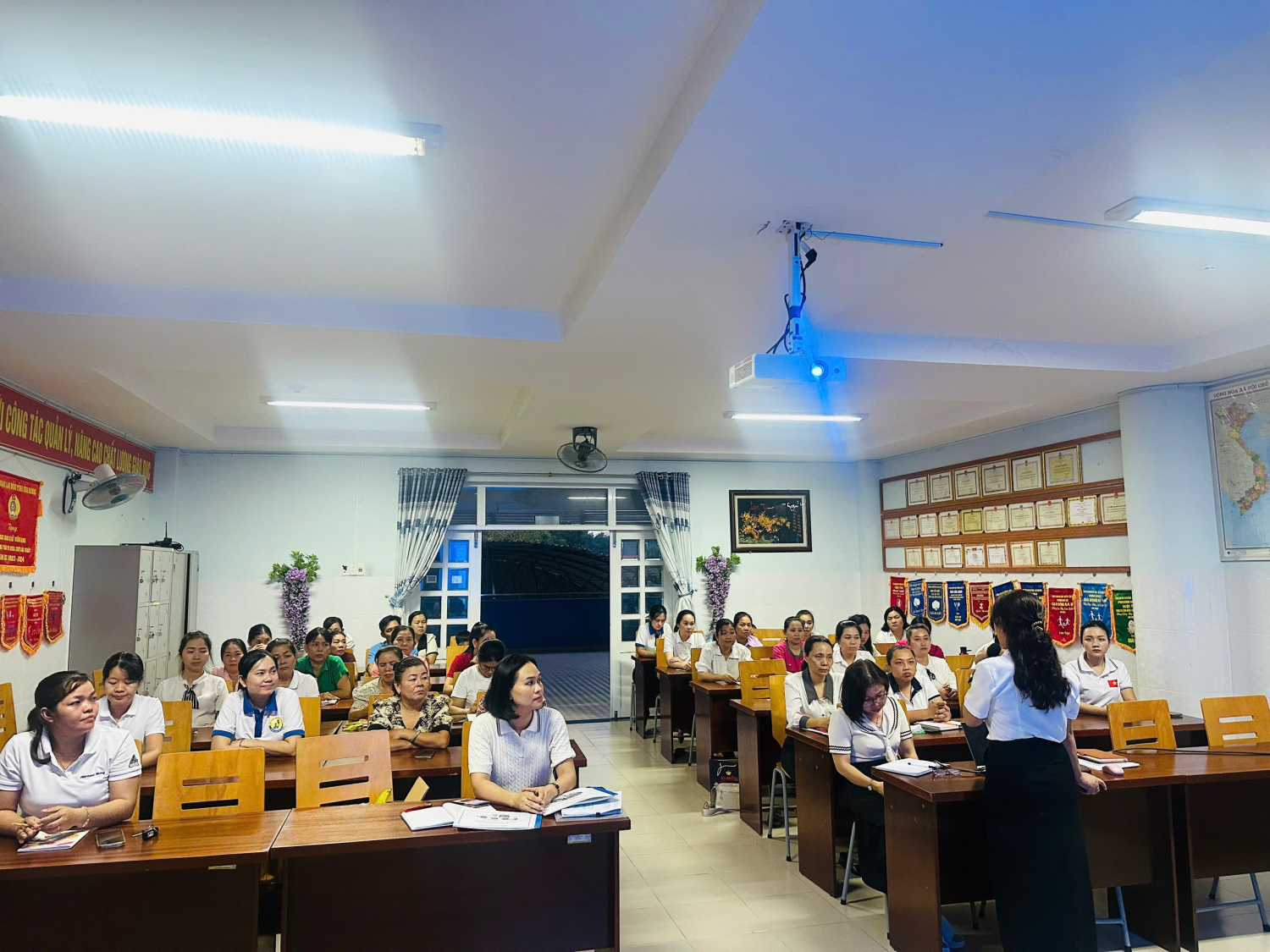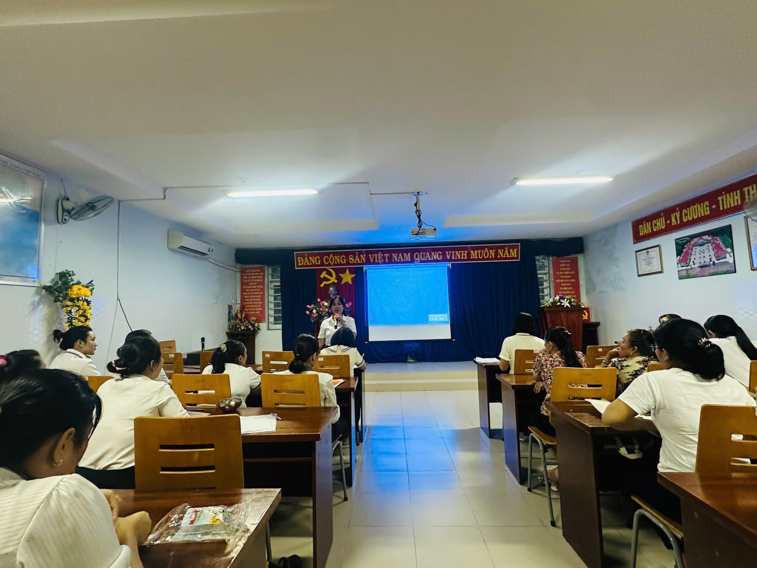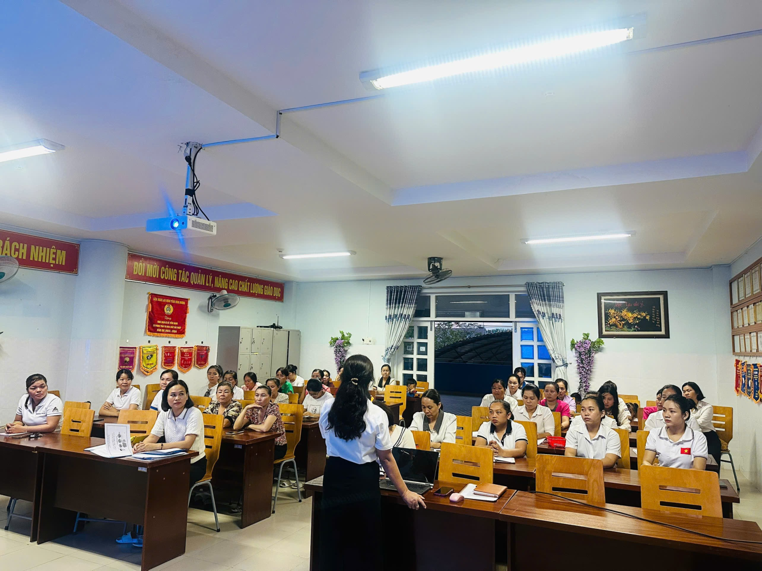 Mỗi cán bộ, giáo viên, nhân viên nhà trường cần nêu cao tinh thần gương mẫu, thực hiện tốt các quy định của pháp luật, giữ gìn nếp sống văn minh, đoàn kết, tương trợ; tích cực tham gia phong trào “Toàn dân bảo vệ an ninh Tổ quốc”, “Xây dựng trường học an toàn – thân thiện – hạnh phúc”.