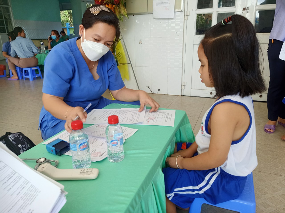 Bác sĩ khám và lấy thông tin của các bé